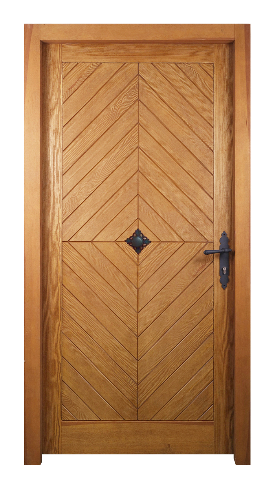 Massivholzhaustüre, Kiefer massiv, Füllungen auf Stockseite im Rautenmuster, inkl. Türstock bis 10cm, Innenisolierung, Doppelfalz, umlaufende