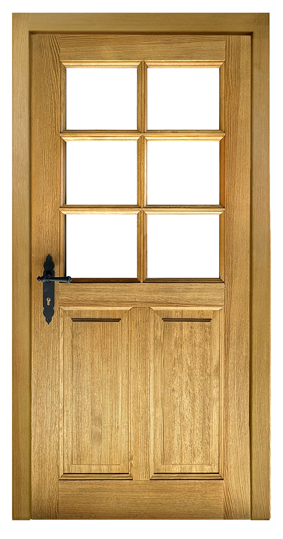 Das Landhaustürmodell T6 ist eine sehr massiv gestaltete rustikale Landhaustüre der ersten Hälfte des 19. Jahrhunderts. Die einerseits sehr wuchtige
