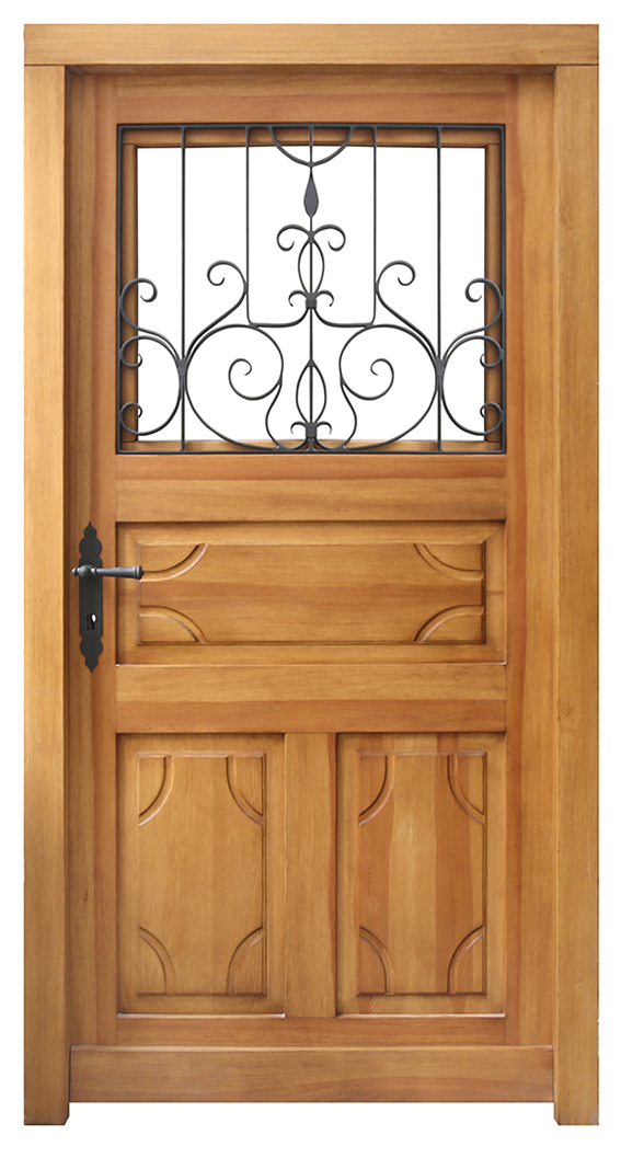 Bei dem Haustürmodell T1-G mit geschmiedetem Fenstergitter handelt es sich um ein Replik einer wunderschönen österreichischen Türe aus dem